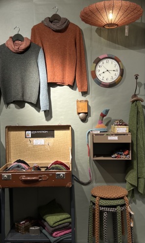 I hallen hittar du nya vantar,mössor, sjalar, tröjor, skosnören och instickade galgar. Ja allt du behöver till hösten och vintern.