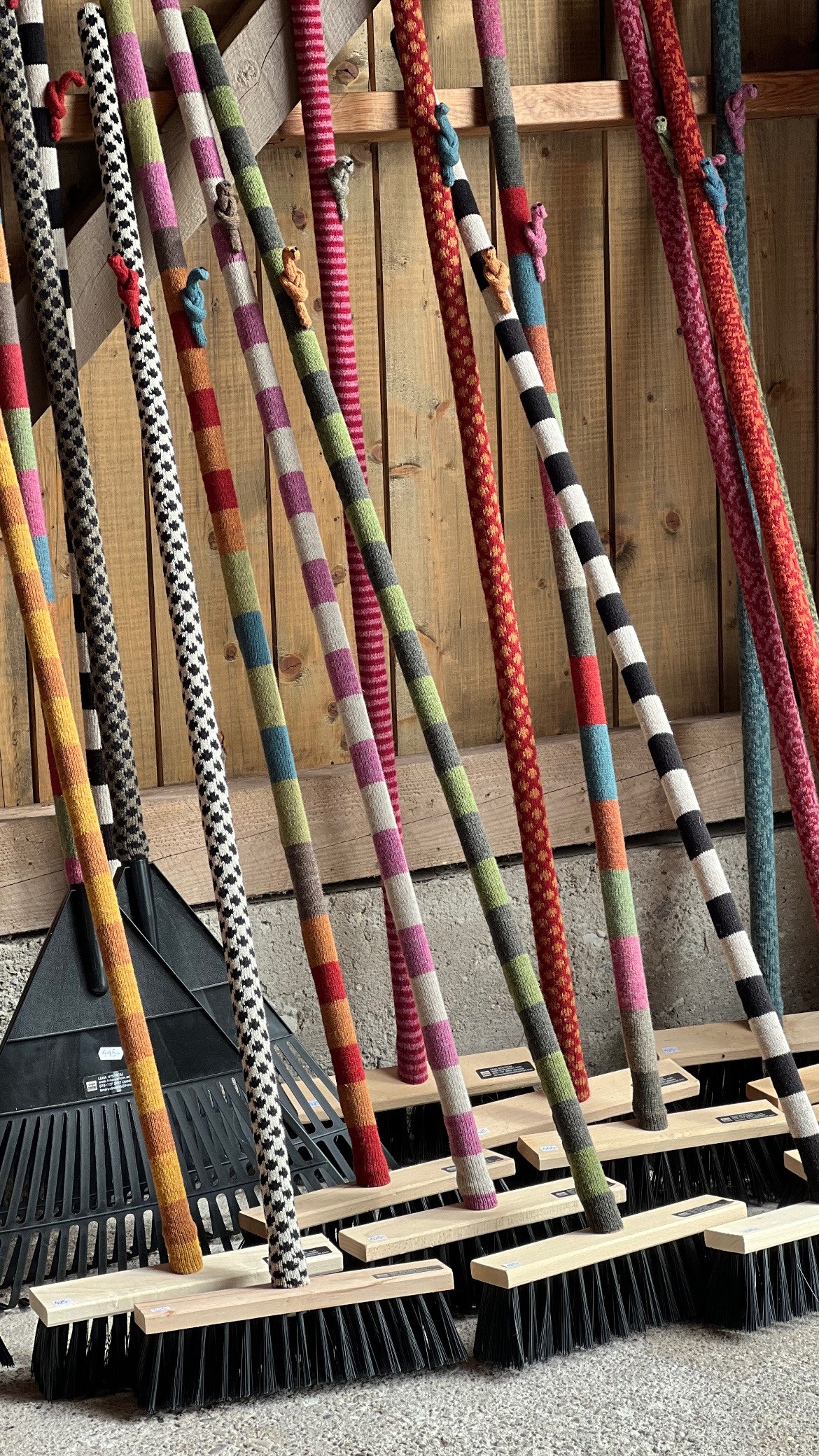 Piasavakvasten är ca 1,50 m. lång och har svart borste. De kostar 425 kr för prickiga,flower och smalrandiga och 445 kr för multifärgade. Fraktkostnaderna på stora pisavakvastar är 125 kr totalt, för skrymande storlek. Vill man bara köpa fodral så går det utmärkt,kolla under fliken fodral, lättare och billigare att skicka om man vill ha det.